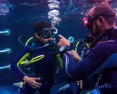 For this program you must be at least 8 years old. You must be able to swim and be in good physical health. No prior diving experience is required.