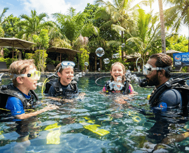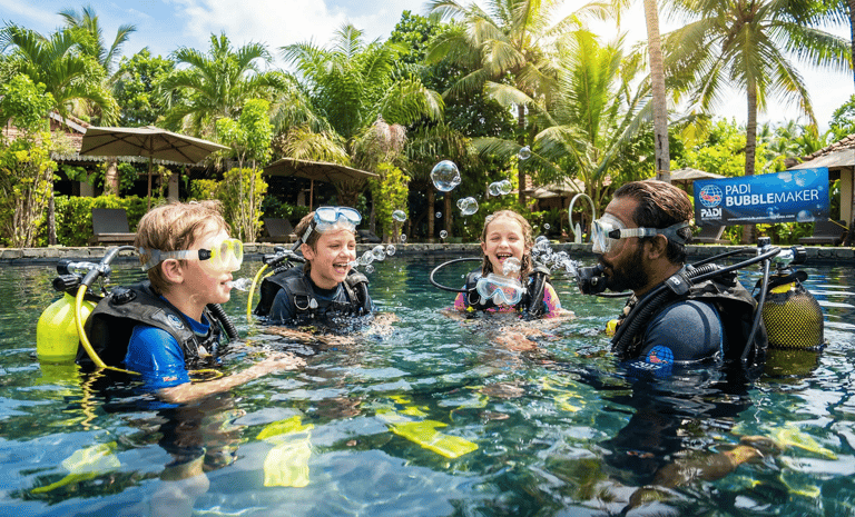 The Bubble Maker is exactly as fun as it sounds – it is the joy of making bubbles while scuba diving. Children aged at least 8 years old use scuba equipment to breathe underwater and swim in shallow water.