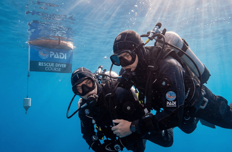 Les plongeurs décrivent le cours de Rescue Diver PADI comme le plus grand défi, mais le plus gratifiant qu’ils aient jamais vécu. Pourquoi ? Parce que vous apprenez à prévenir et à gérer les problèmes dans l’eau, et à avoir davantage confiance en vos compétences de plongeur, sachant que vous pouvez aider les autres en cas de besoin. Pendant le cours, vous apprenez à devenir un meilleur binôme en pratiquant les exercices de résolution de problèmes jusqu’à ce que cela devienne un réflexe. De plus, le cours est vraiment amusant – il est sérieux, mais on rit beaucoup pendant l’apprentissage.